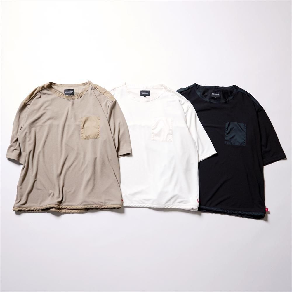 吸収速乾性の良いカノコ素材を使用したゆったりシルエットのトップス。背中にベンチレーションを配備し、エコの異素材を用いてデザイン性と機能性を両立。左胸にはポケット、裾はドローコードで調整可能。