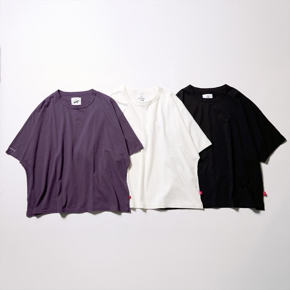 “RUGGED”シリーズは環境への負担を抑えた独自の環境配慮型染色法「BRING OUT」生地を使用したライン。“HAUTE”ラインとは正反対のしっかりとした厚みとハリ・コシのある質感が特徴。右袖には銀糸の刺繍を施し、背中にはセンターハギを施した無骨さのある一枚。(3/4スリーブカットソー)