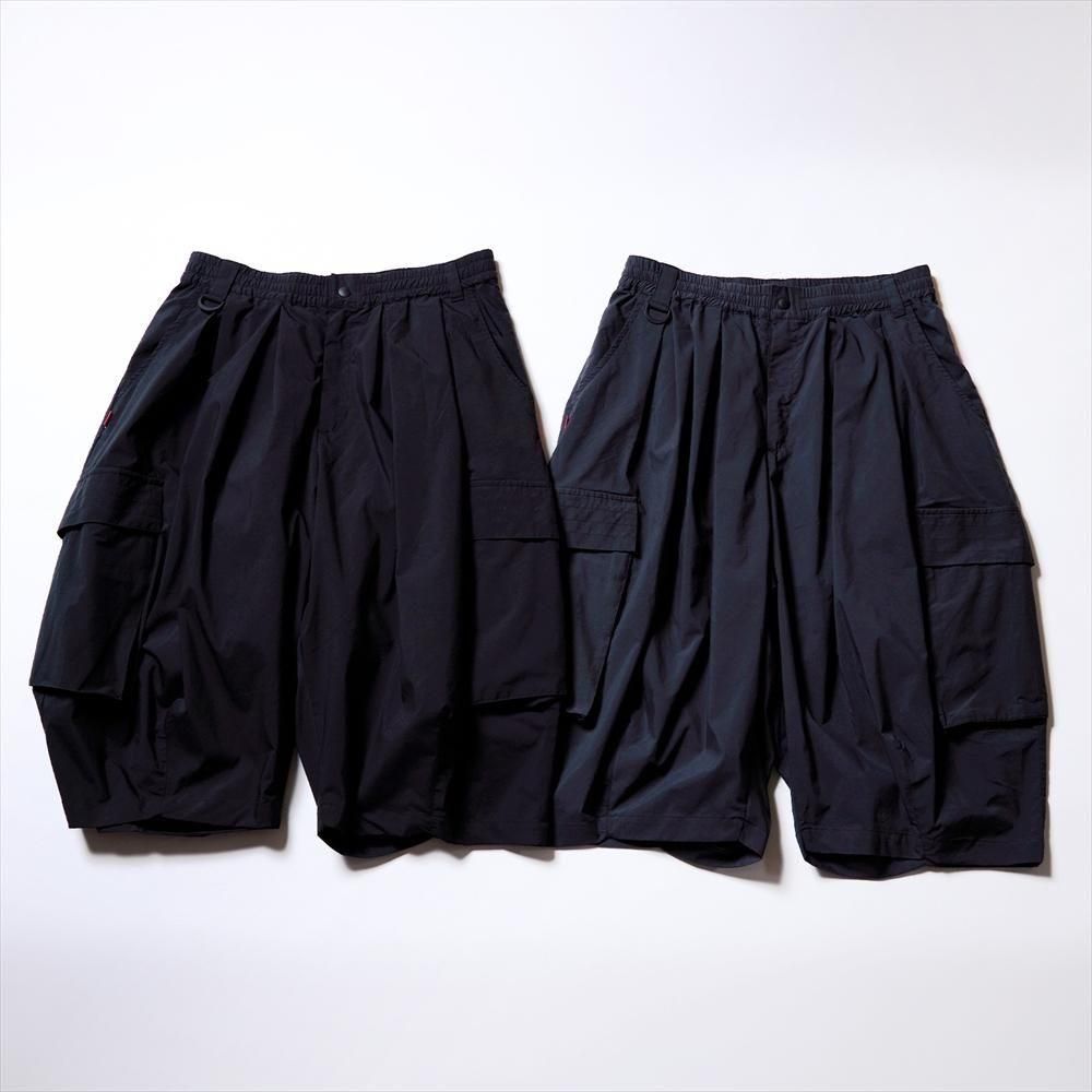 縦糸にCORDURAナイロン、横糸にCOOLMAXポリエステルを掛け合わせた高機能素材を使用したワイドカーゴショーツ。優れた耐久性と通気性を兼ね備え、快適な着用感を実現。膝下丈のワイドシルエットで、ミリタリーとモードをMIXした洗練されたデザインが魅力の一着。